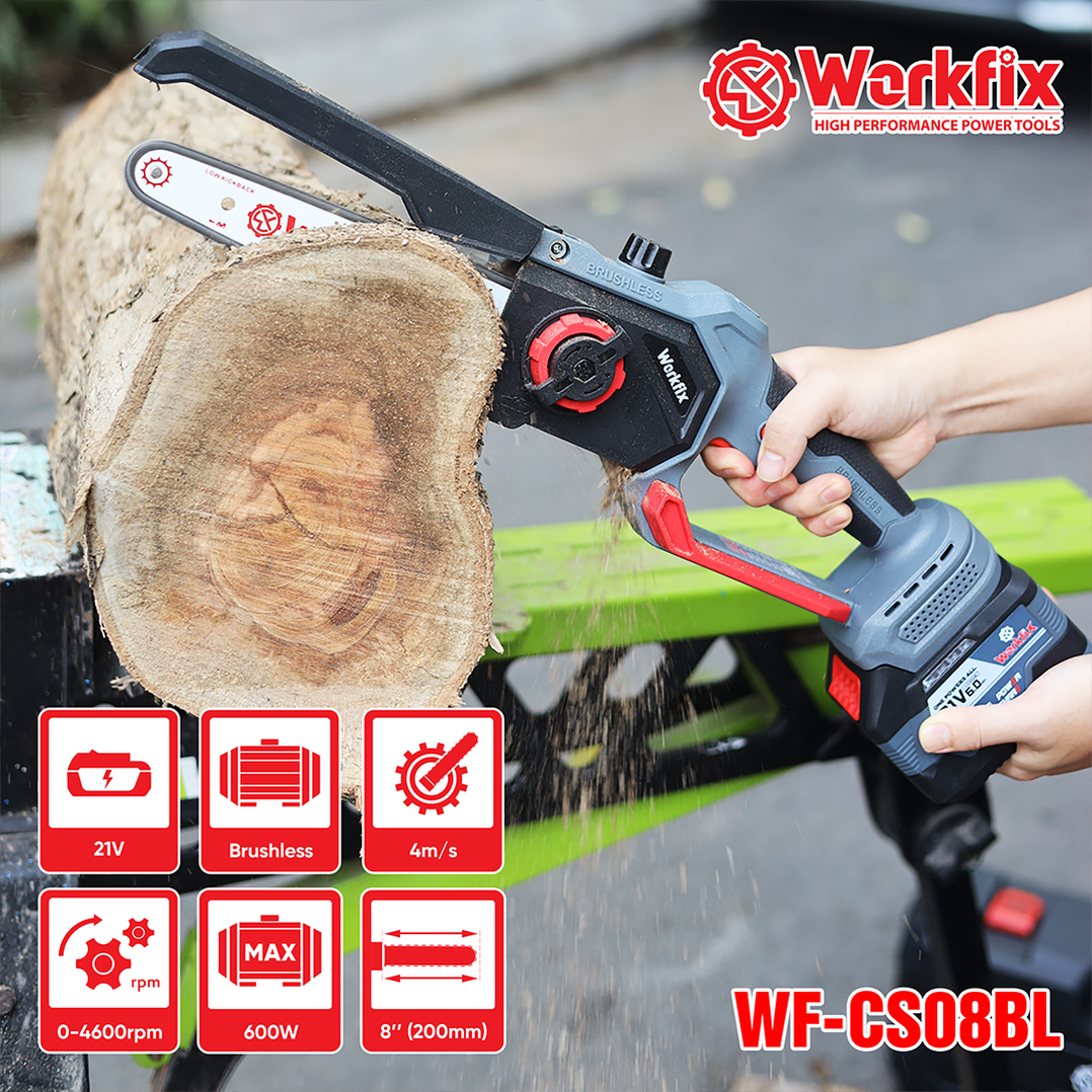 MÁY CƯA XÍCH 8INCH WORKFIX WF-CS08BL, TRA NHỚT TỰ ĐỘN, 2 PIN 15 CELL